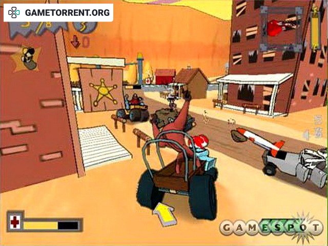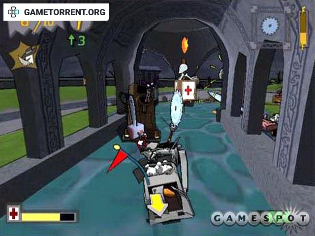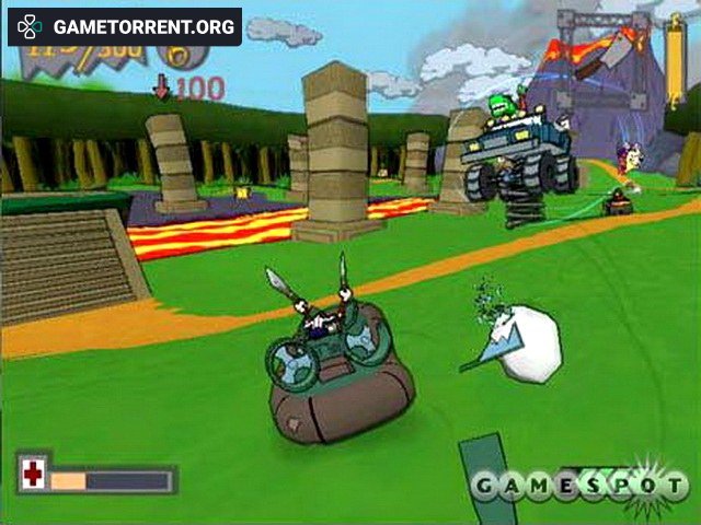 Автомобильная экшен игра, действие которой происходит в мультяшной вселенной с 12 различными средами. Используйте массивную бензопилу, гигантский топор или одно из 34 других видов дикого оружия. Есть 3 игровых режима: Smack Attack (ударьте своих противников, чтобы набрать очки), Gate Relay (пройдите контрольные точки 5 раз, прежде чем ваши враги) и Flag Rally (CTF). 6 игровых персонажей с 4 открываемыми гостевыми звездами. От 1 до 4 игроков.