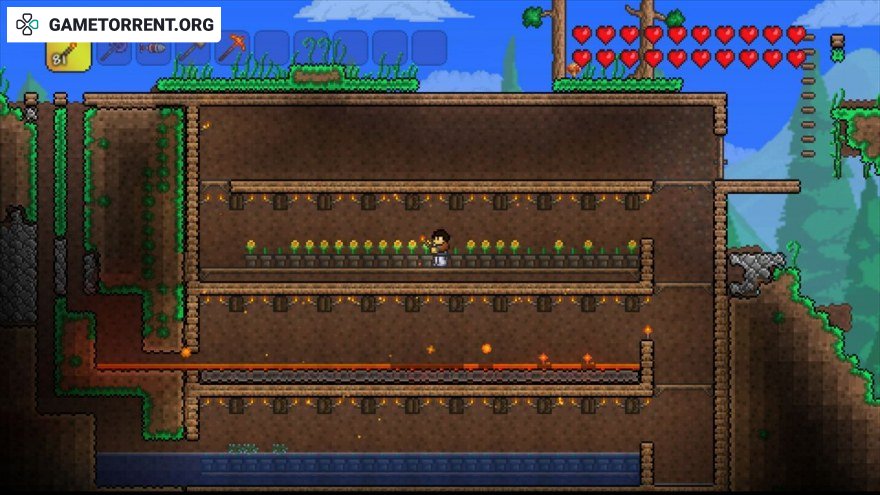 Террария? Что это? Террария - это страна приключений! Страна загадок! Земля, которую вы можете формировать, защищать и наслаждаться. Ваши возможности в Terraria безграничны, вы любитель боевиков с чешущимся пальцем на спусковом крючке? Мастер-строитель? Коллекционер? Исследователь? Здесь есть что-то для всех. Копай, сражайся, исследуй, строй! В этой динамичной приключенческой игре нет ничего невозможного. Мир - это ваш холст, а сама земля - это ваши краски. Бери свои инструменты и вперед! Создавайте оружие, чтобы сражаться с множеством врагов в многочисленных биомах. Копайте глубоко под землей, чтобы найти аксессуары, деньги и другие полезные вещи. Собирайте ресурсы, чтобы создать все необходимое, чтобы сделать мир своим. Постройте дом, форт или даже замок. Люди будут жить там и, возможно, даже продавать вам разные товары, чтобы помочь вам в вашем путешествии. Но будьте осторожны, вас ждут еще больше проблем...Вы справитесь с задачей?